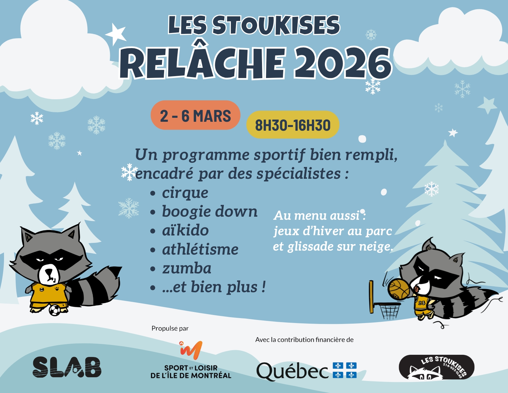 Au SLAB, nous en profitons pour bonifier la programmation du camp de jour de la Relâche afin d’offrir de belles occasions de découvertes et d’initiation aux activités de loisirs actifs en extérieur ou en intérieur.